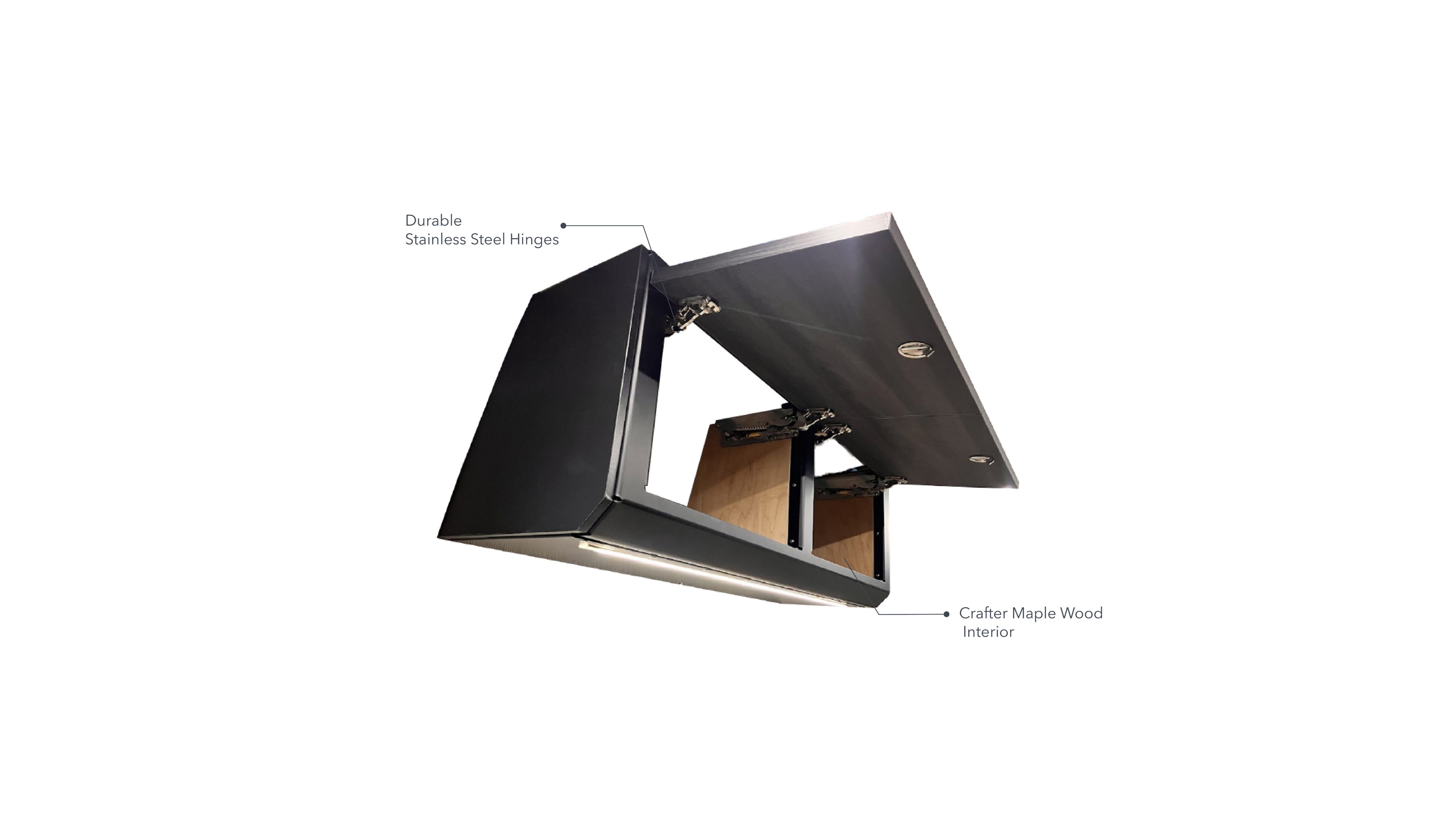 Elevate your van experience with our Luxury Ascent Cabinets featuring sleek flip-up faces for effortless access and premium storage sophistication.
