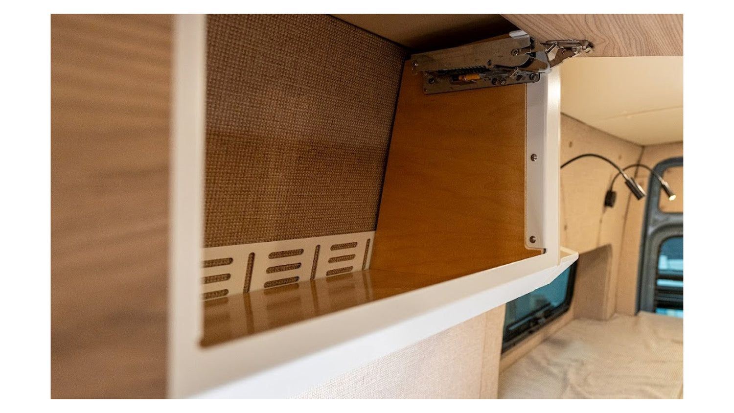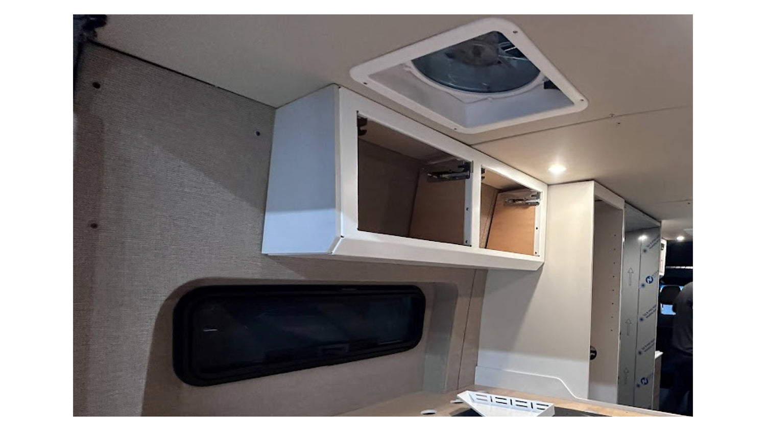 Luxury: Elevate your van experience with our Luxury Ascent Cabinets featuring sleek flip-up faces for effortless access and premium storage sophistication.