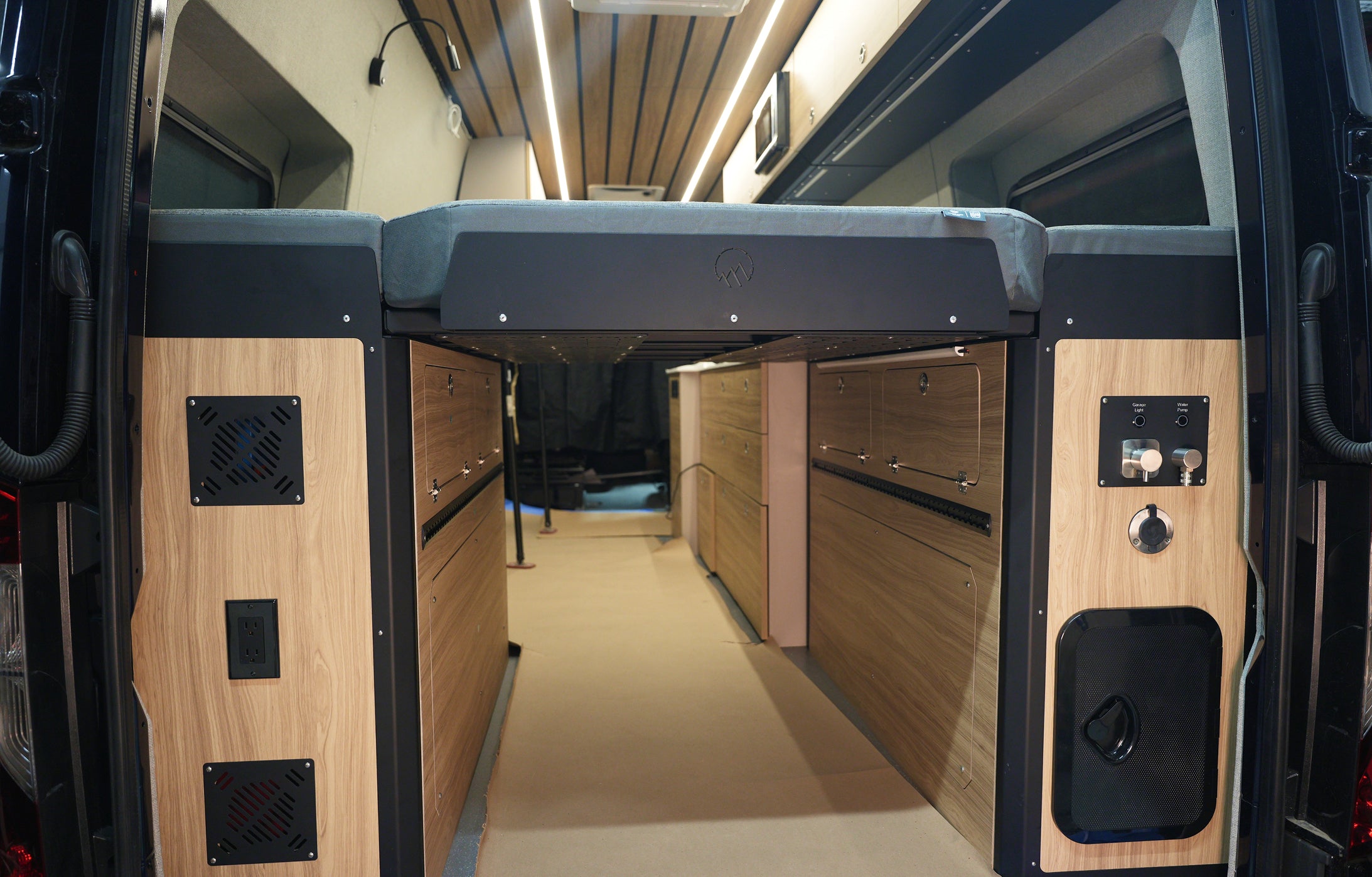 Access points let you reach storage and utilities easily from inside or outside the van.